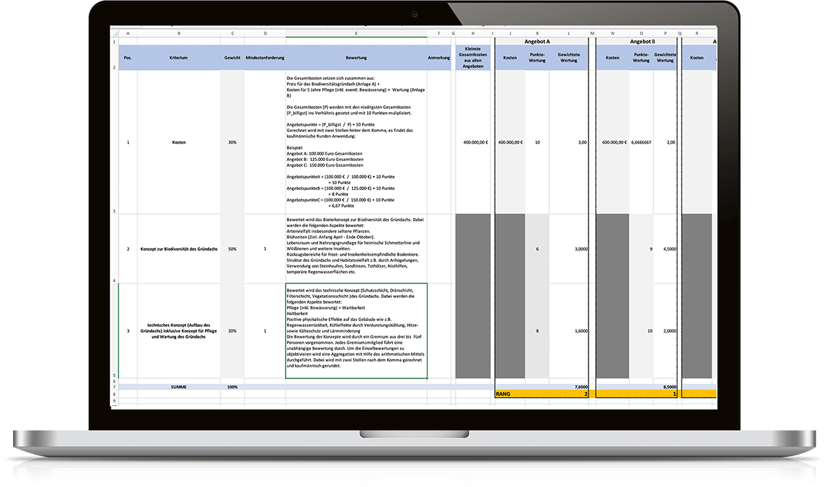 12 Bewertungsmatrizen (Vorlagen) für Vergaben