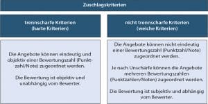Bei qualitativen (nichtmetrischen) Zuschlagskriterien kann zwischen trennscharfen und unscharfen Punkteskalen differenziert werden.