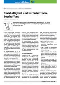 Nachhaltigkeit und Wirtschaftlichkeit müssen keine Gegensätze sein. Der in der Ausgabe 3/2019 und 4/2019 der Zeitschrift VergabeFokus erscheinende Aufsatz, zeigt wie man Nachhaltigkeitsaspekte in Ausschreibungen vergaberechtskonform berücksichtigen kann.